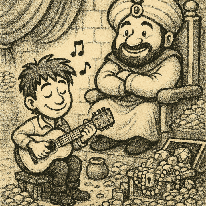 Der Sultan von Bagdad hat von deinen Künsten gehört und dich in seinen Palast bringen lassen. Nun musst du im Thronsaal für ihn spielen. Er ist unermesslich reich und belohnt Musiker, wenn sie gut spielen und ihn unterhalten – wirft sie jedoch in den Kerker, wenn sie Fehler machen. Übe also gut – und gib dein Bestes!
