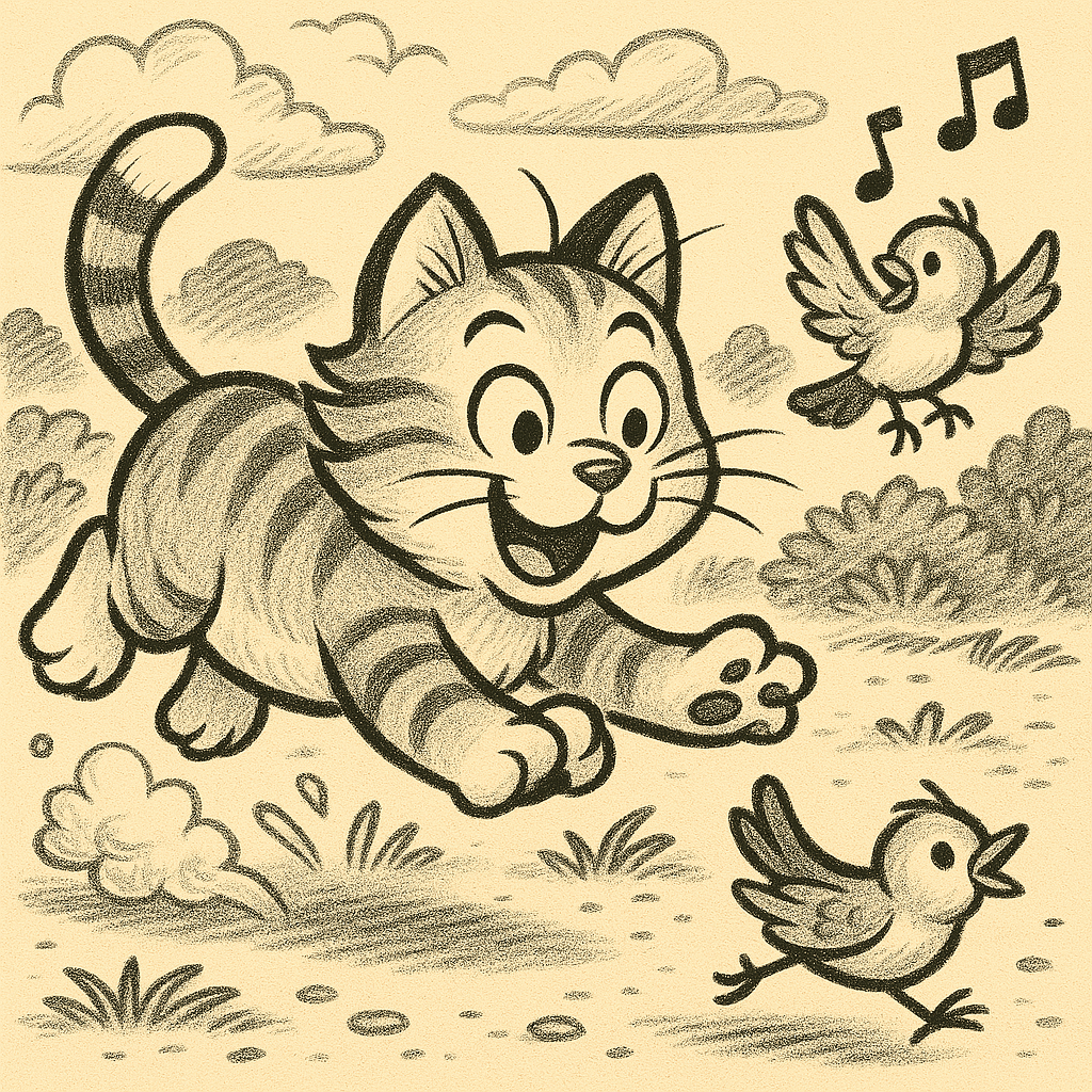 Im folgenden Lied kannst du die punktierte Viertelnote üben – genau wie Kater Moritz bei seiner Vogeljagd.